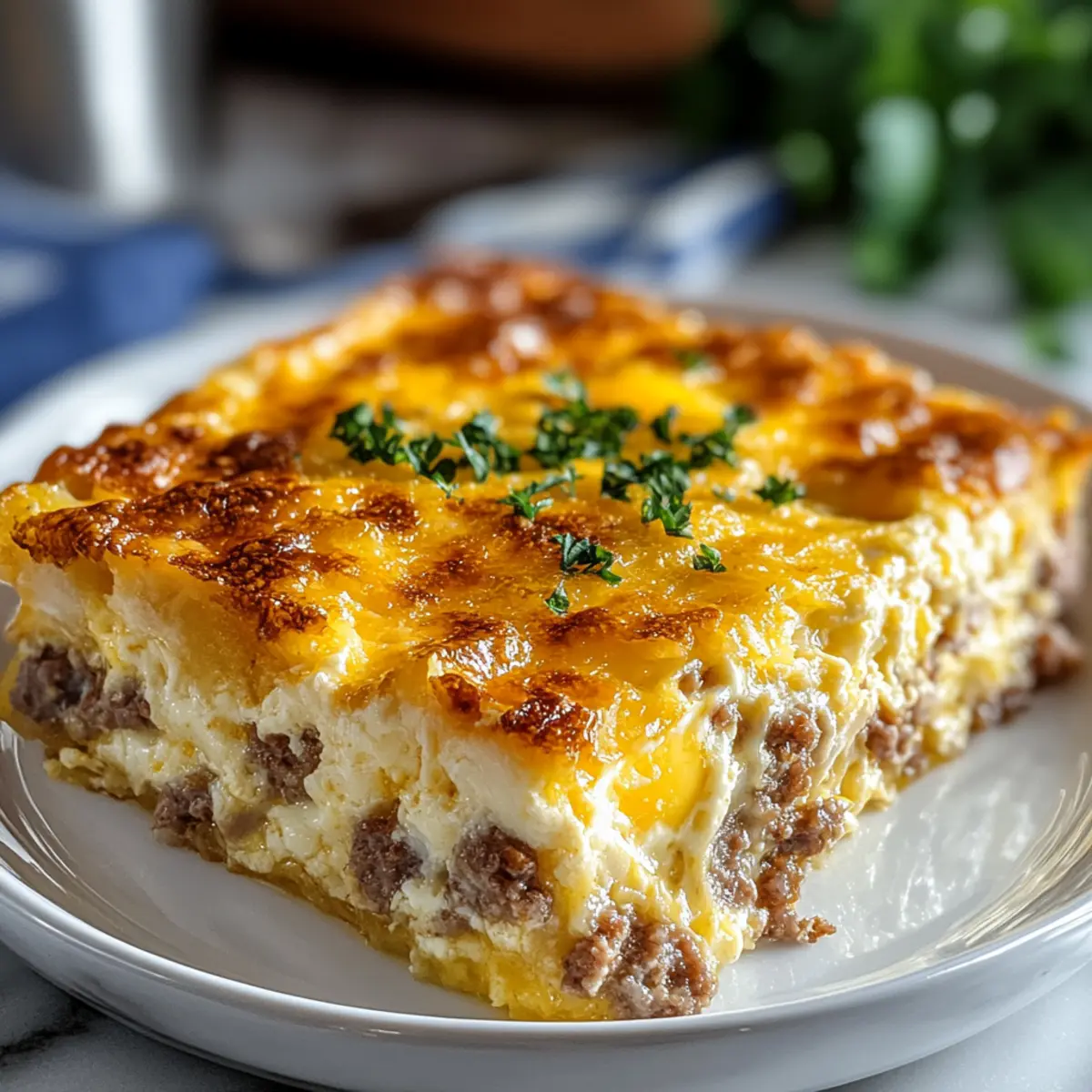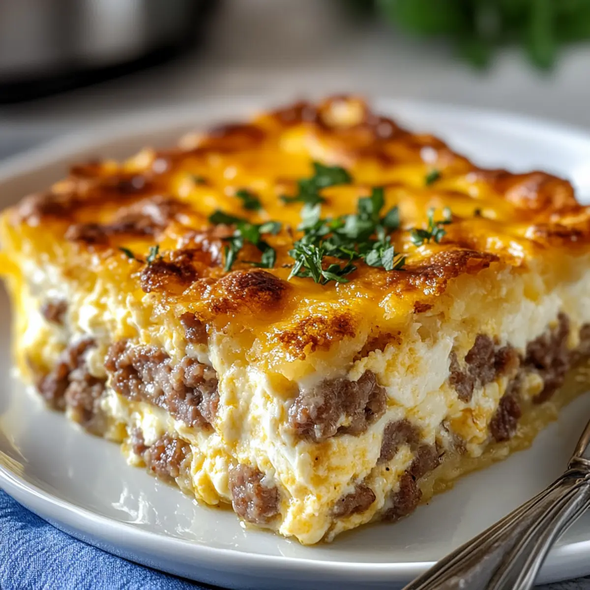Sausage, Egg, and Cream Cheese Hashbrown Casserole Delight