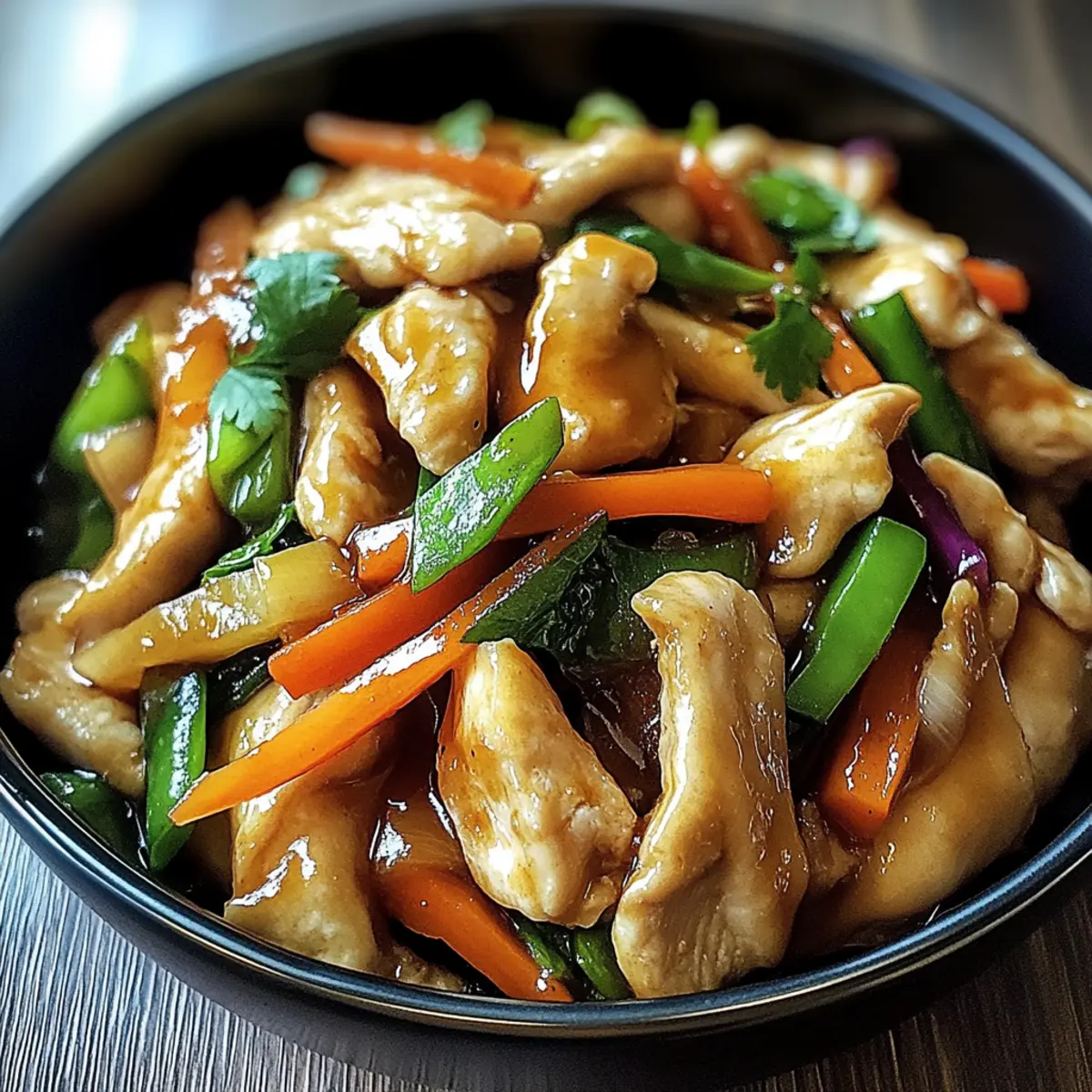- Combine the cooked chicken with sautéed vegetables and add hoisin, soy, and oyster sauces, stirring to coat.