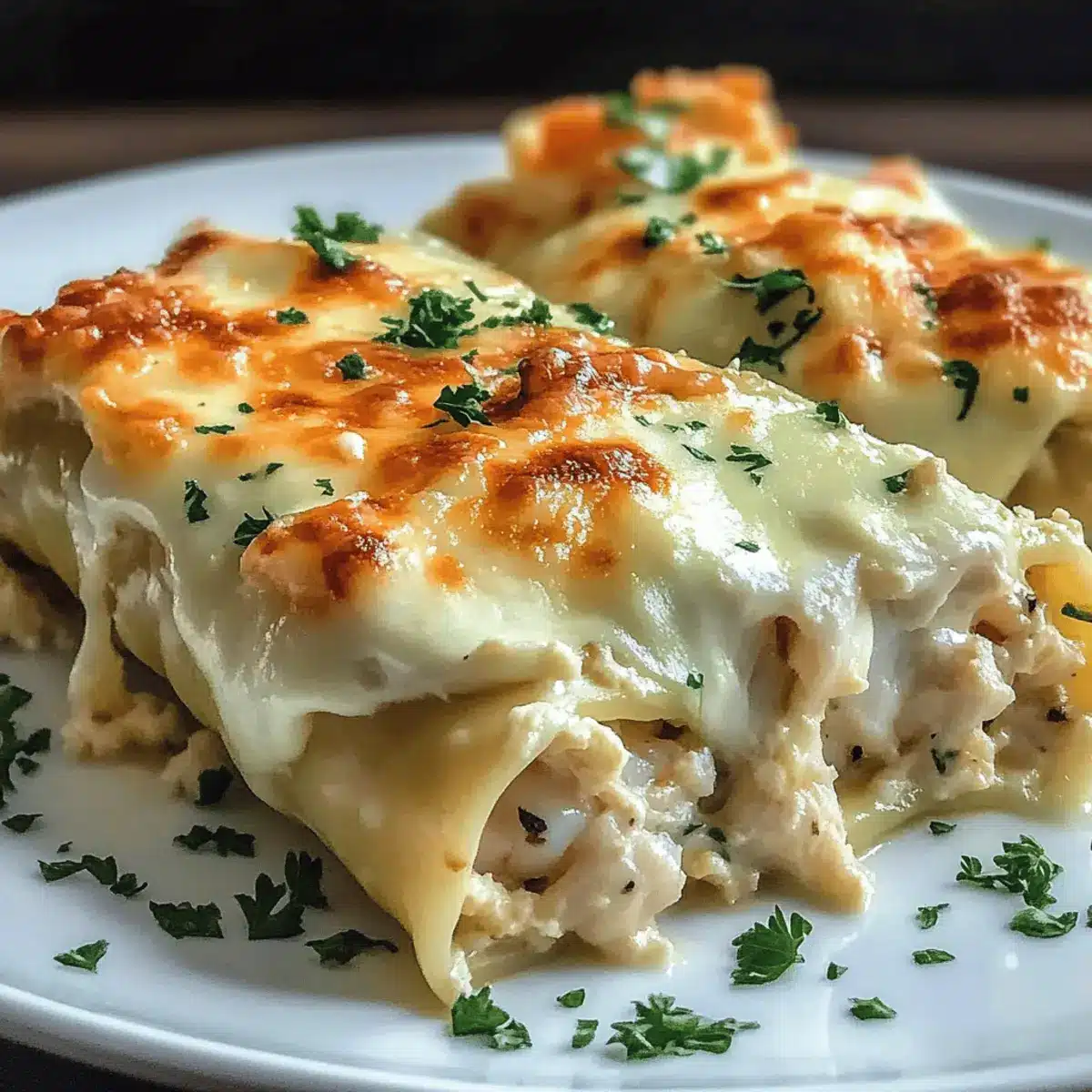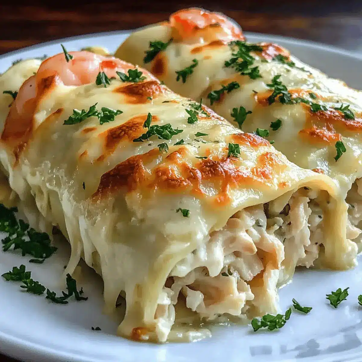 Once out of the oven, let your Shrimp Crab Alfredo Roll-Ups rest for a few minutes. Garnish them with freshly chopped parsley for a vibrant pop of color and fresh flavor. This final touch not only enhances the visual appeal but also adds a hint of freshness that complements the rich flavors beautifully.
