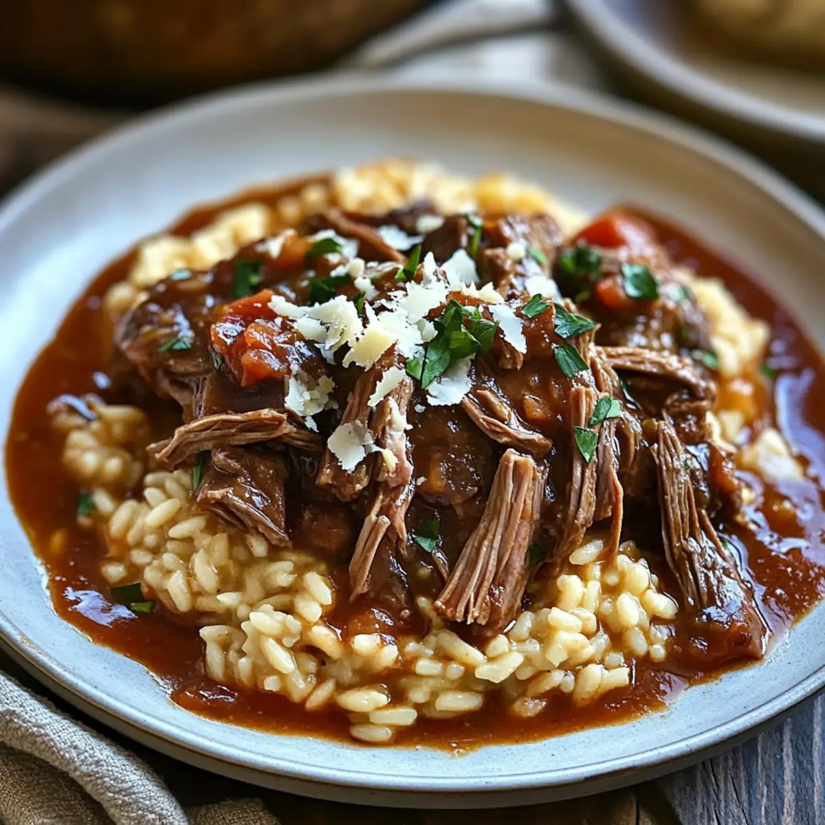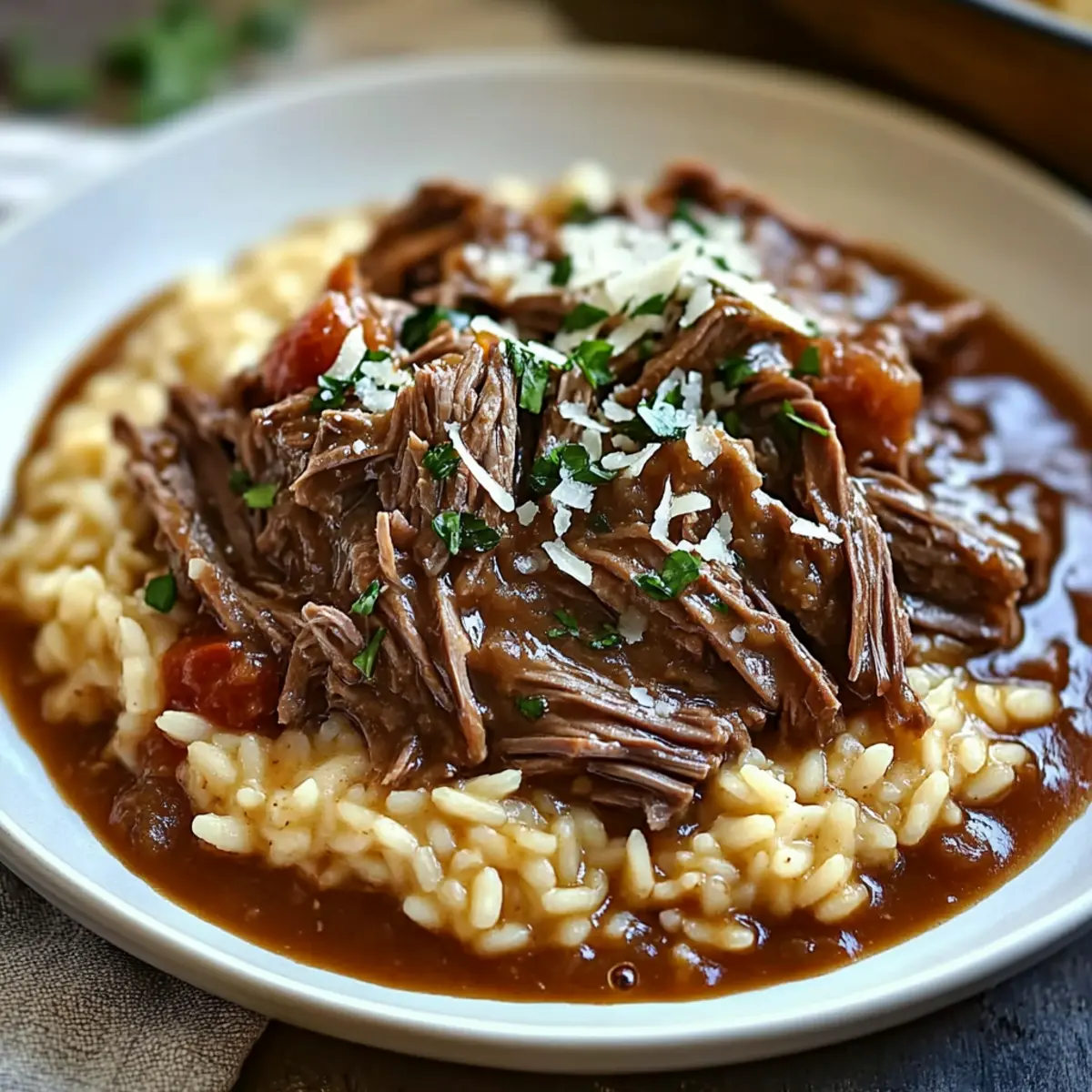 Slow-Braised Pot Roast with Creamy Parmesan Risotto to Savor