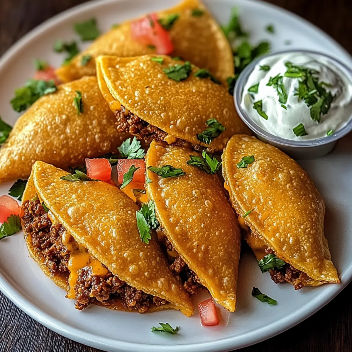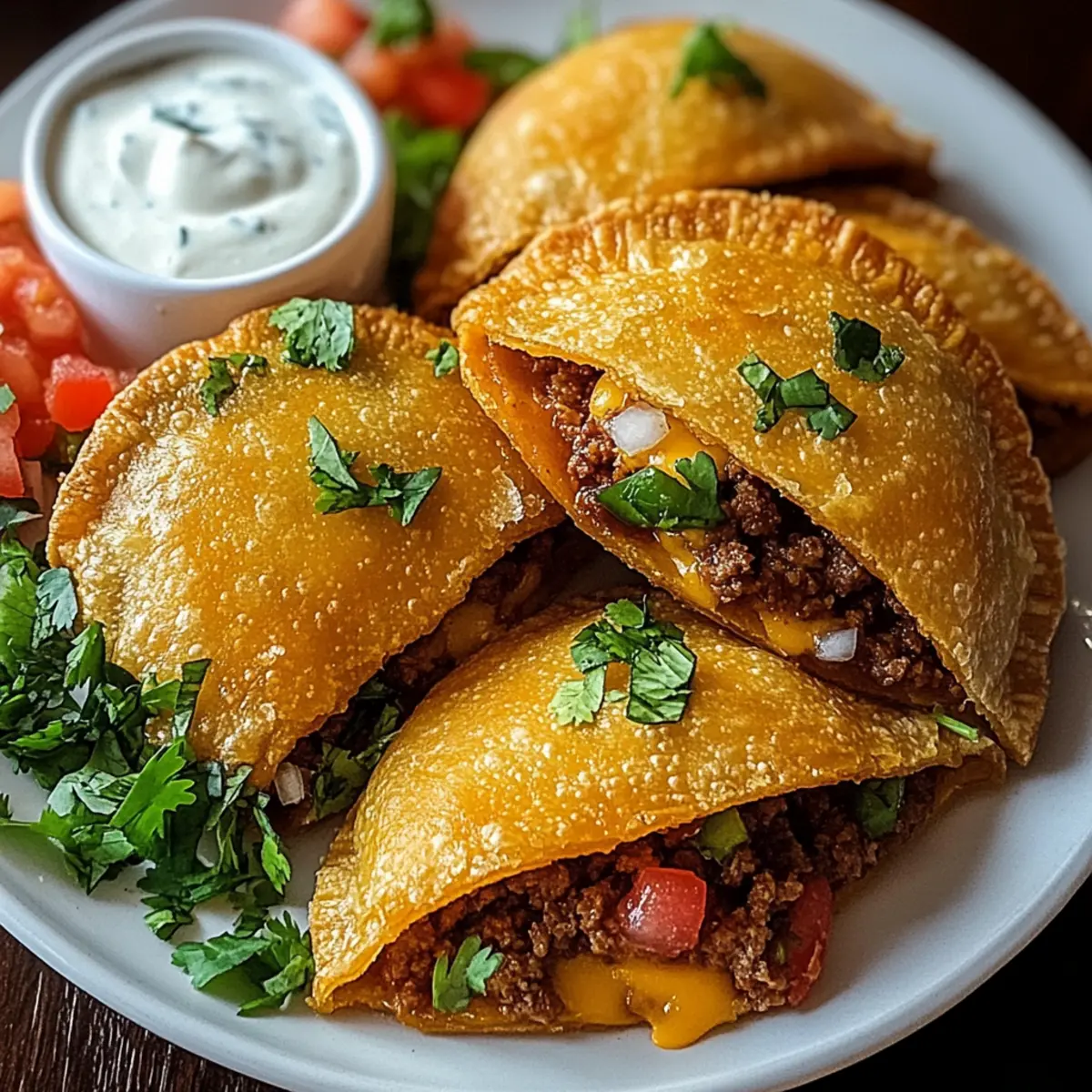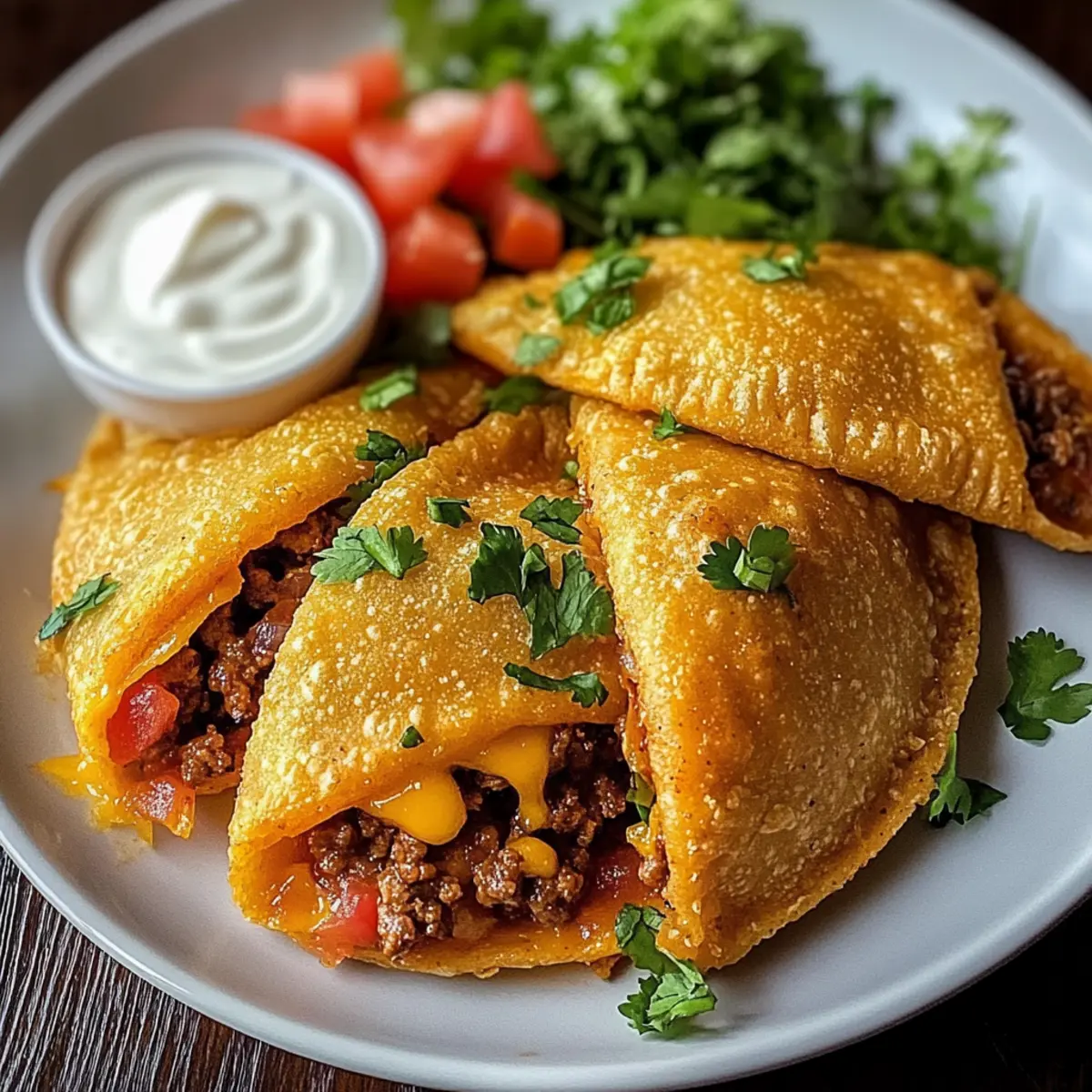 - Arrange your spicy crispy Mexican taco pockets on a serving platter. Pair them with a side of sour cream and salsa for dipping.