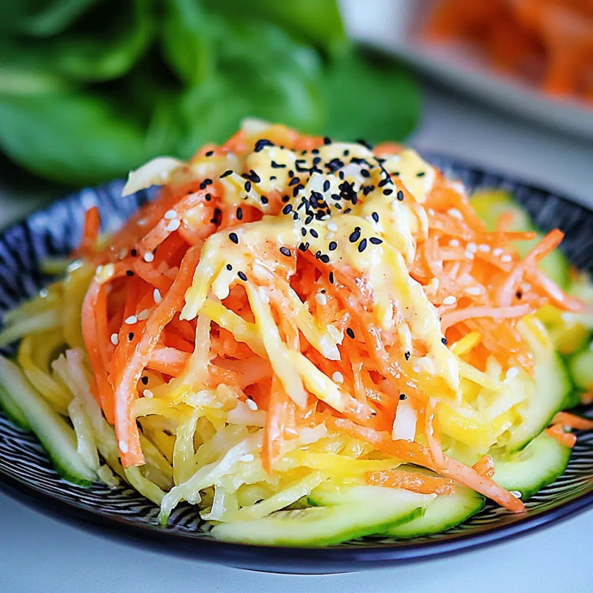 - 1 medium English cucumber, cut into thin julienne – Adds a fresh crunch; pat dry to remove excess moisture for the best texture.