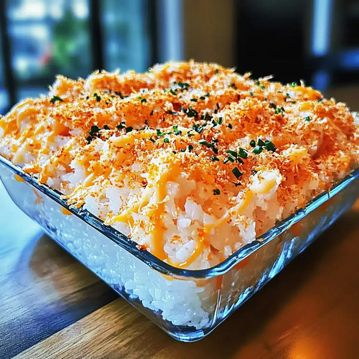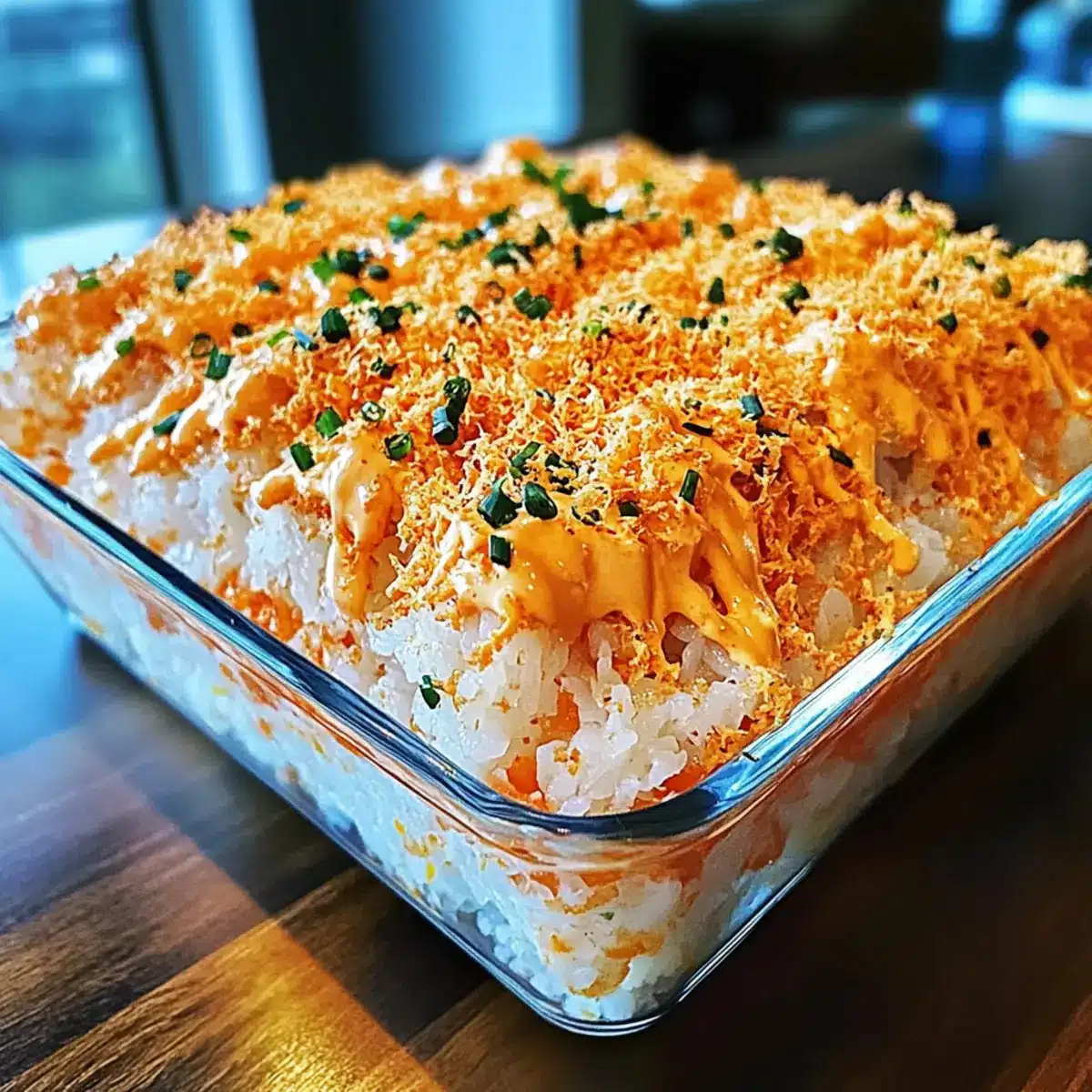 Creative Toppings: Experiment with toppings beyond cheese; crushed wonton chips or sesame seeds can add delightful texture to your Spicy Tuna and Creamy Crab Sushi Bake.