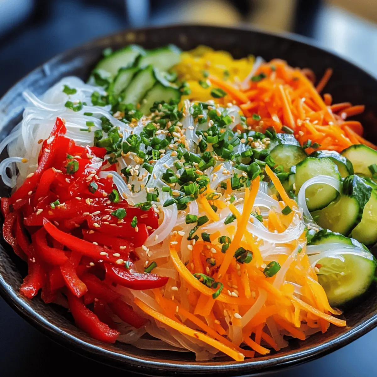 Begin by boiling a pot of water and cooking the rice vermicelli noodles according to package instructions—usually about 3–5 minutes. Once tender, drain the noodles and immediately rinse them under cold water to stop the cooking process. Set the cooled noodles aside in a bowl, allowing them to dry slightly while you prepare the vegetables.