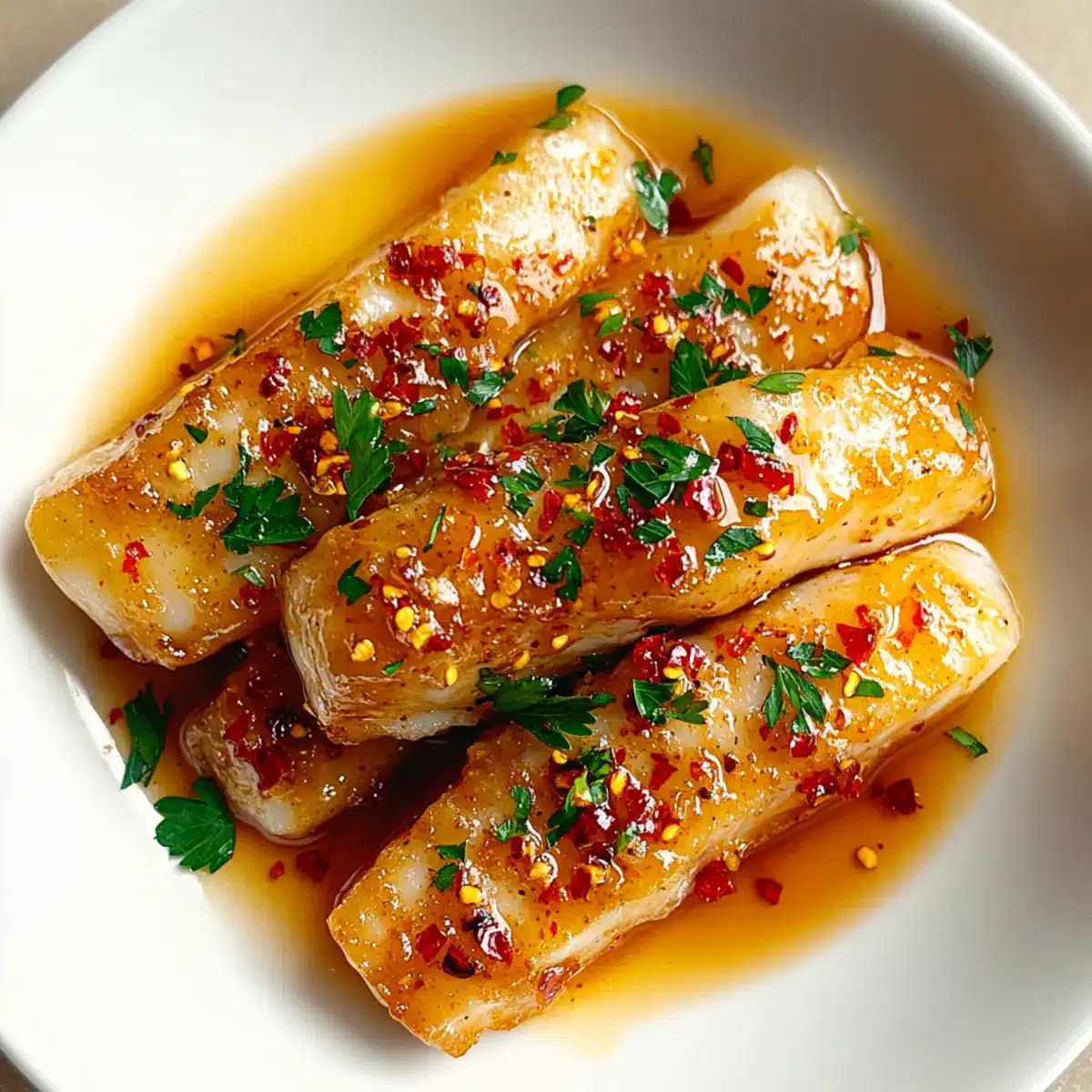 Once your cod is perfectly glazed, carefully transfer the fillets to a serving plate. Drizzle any remaining sticky sauce over the top, allowing it to pool enticingly around the fish. For a burst of freshness, sprinkle chopped parsley and, if desired, an extra pinch of red pepper flakes. This vibrant presentation not only elevates the dish but also adds that final touch of gourmet flair.