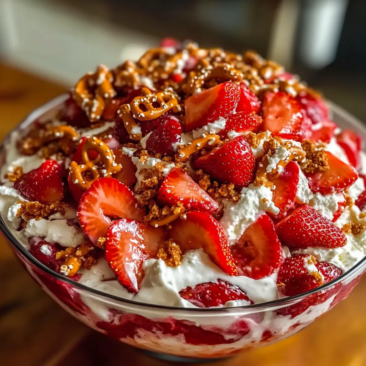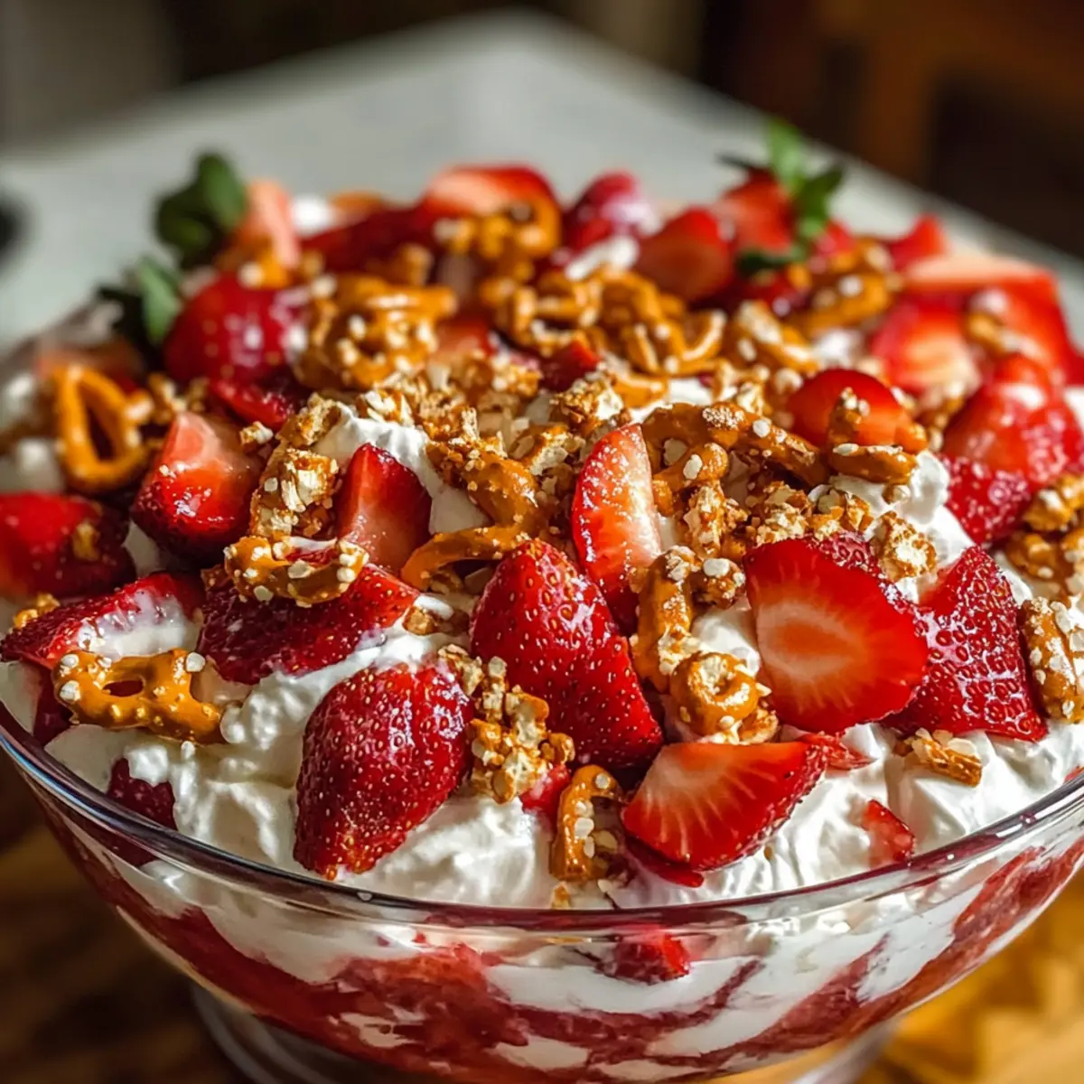 Make Ahead Convenience: You can prepare components in advance, just adding the strawberries and pretzel crunch right before serving, making it a practical choice.