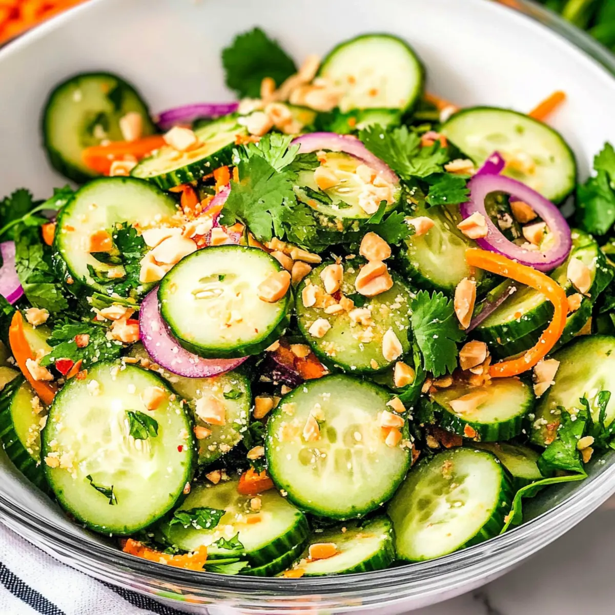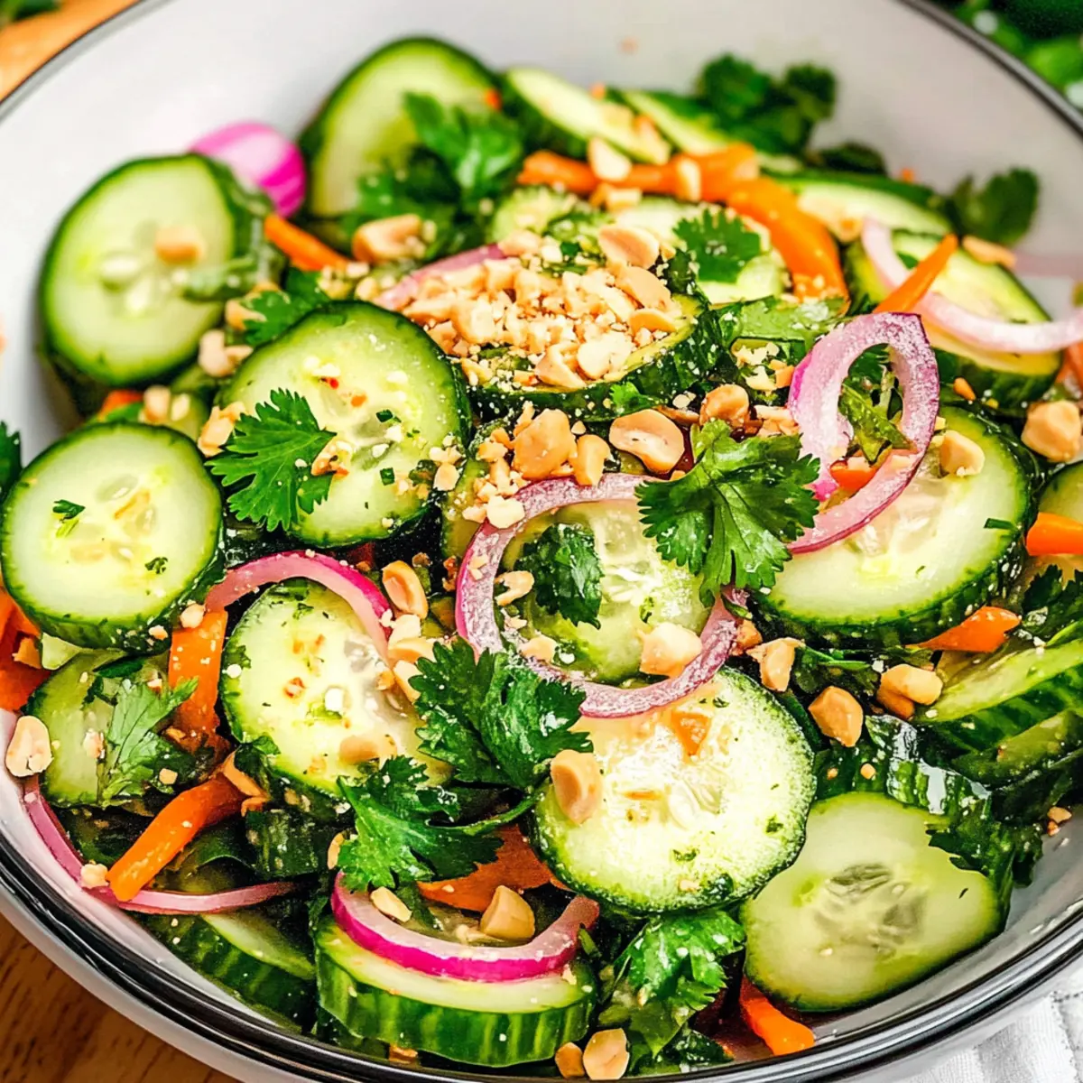 • Use Fresh Ingredients: Always opt for freshly chopped cilantro and crispy vegetables; their brightness and crunch make the Thai Cucumber Salad truly unforgettable.
