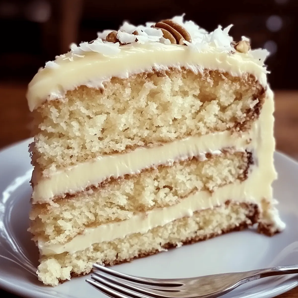 Decadent Flavor: Each bite of this cake offers a heavenly combination of creamy white chocolate, nutty pecans, and sweet coconut that’s truly irresistible.
